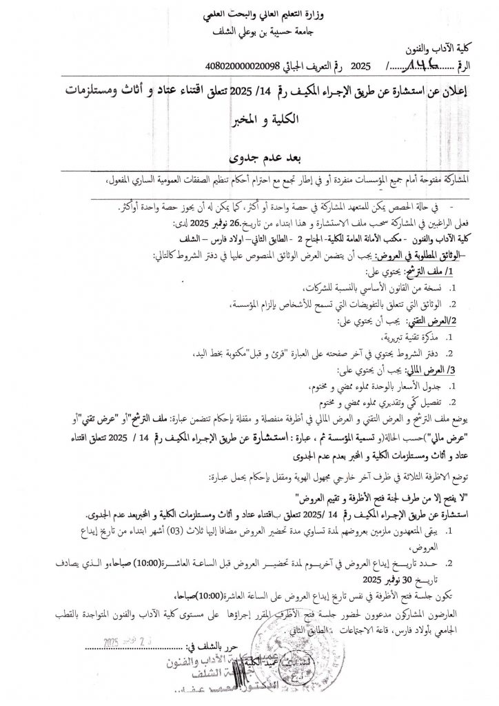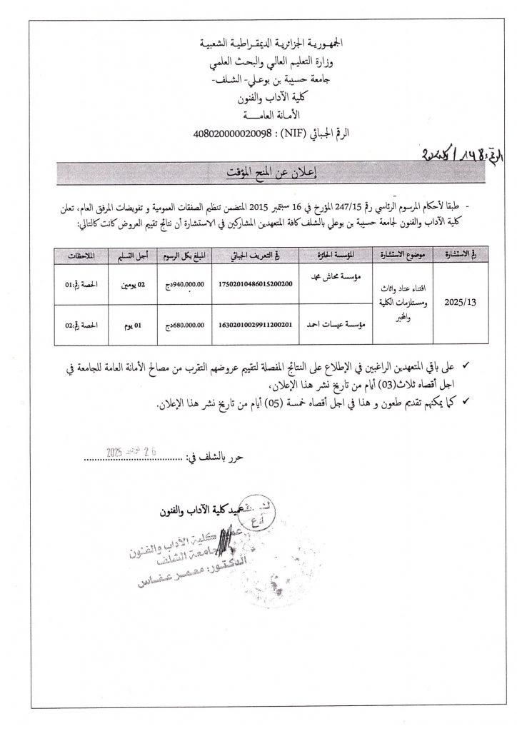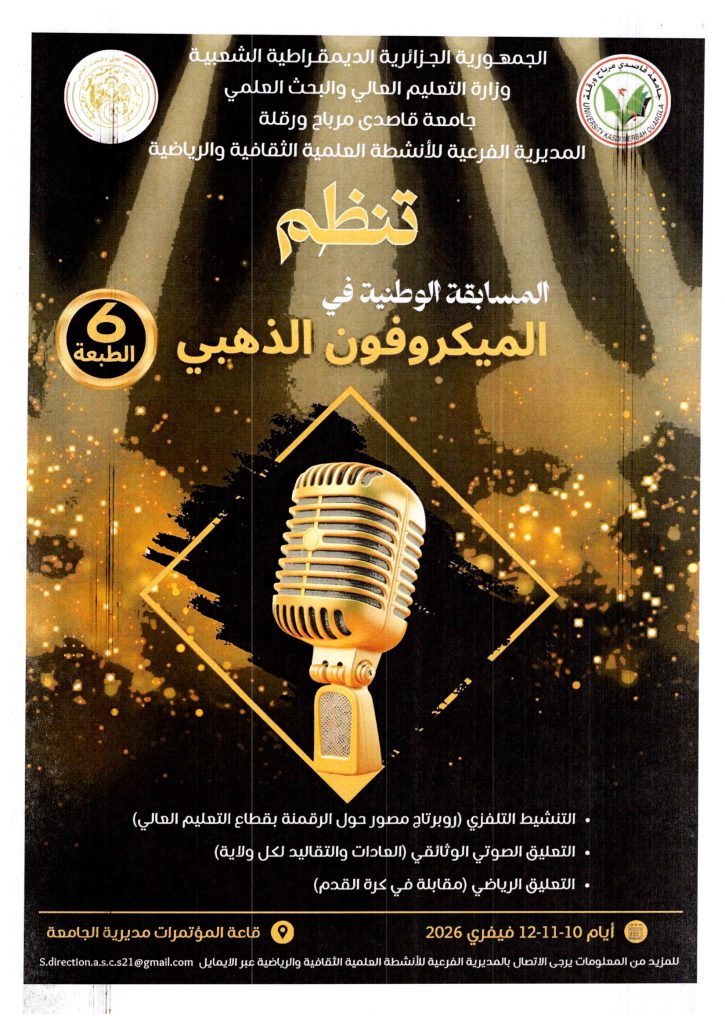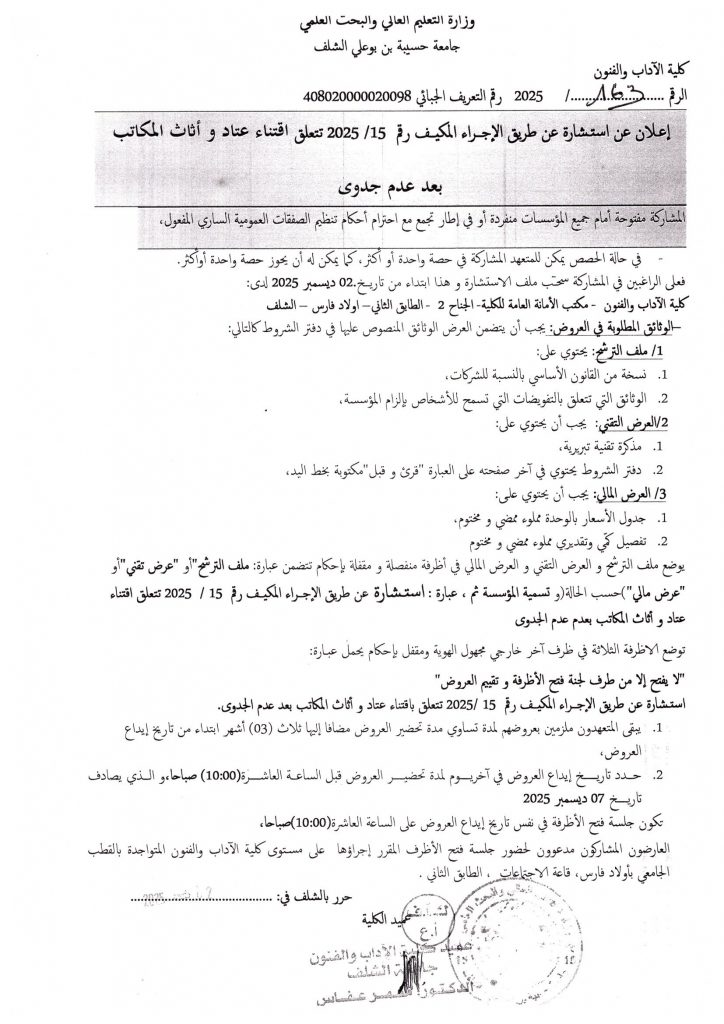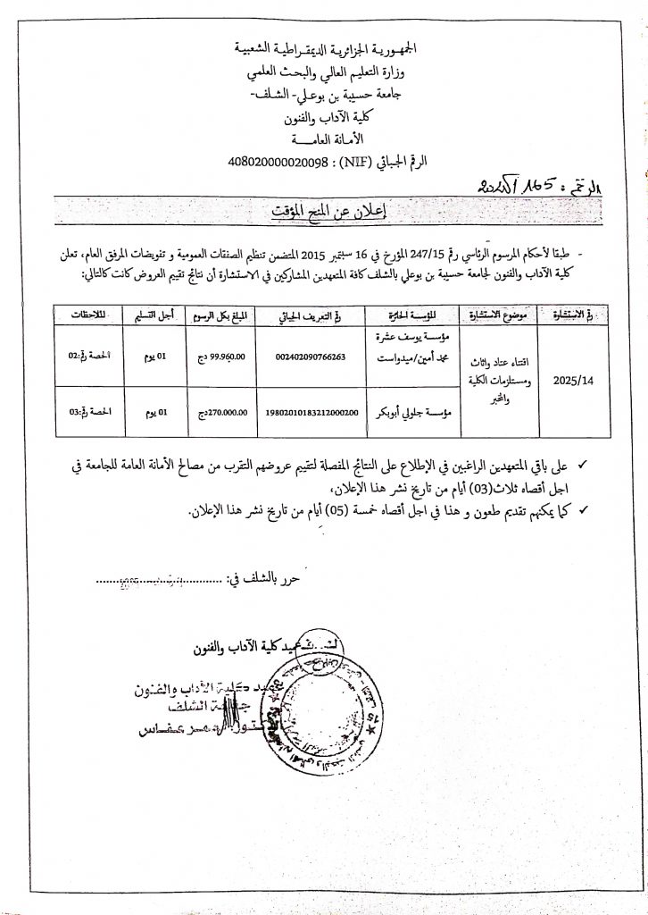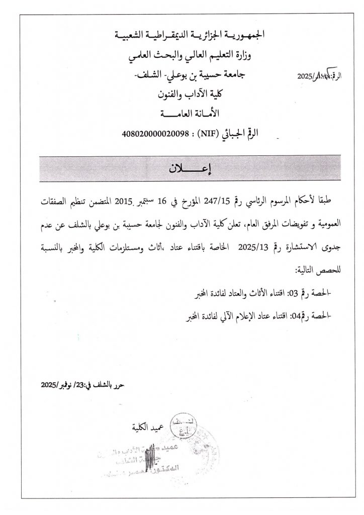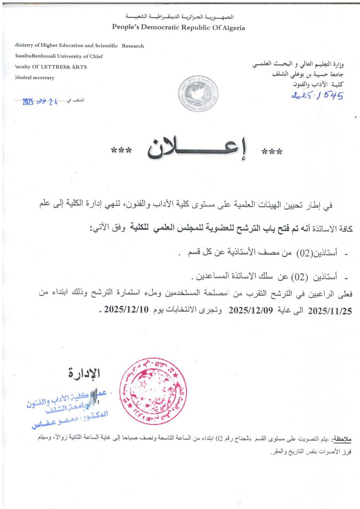 تعلم المديرية الفرعية للانشطة العلمية الثقافية و الرياضية جميع طلبة جامعة حسيبة بن بوعلي الشلف الراغبين في المشاركة و تمثيل