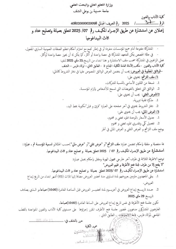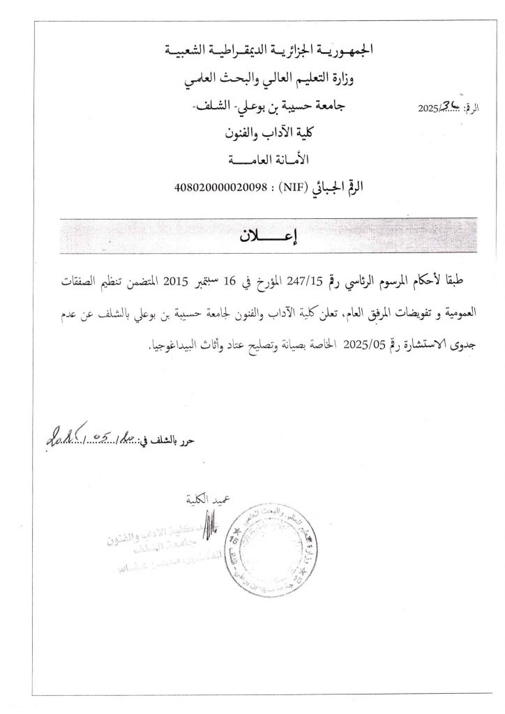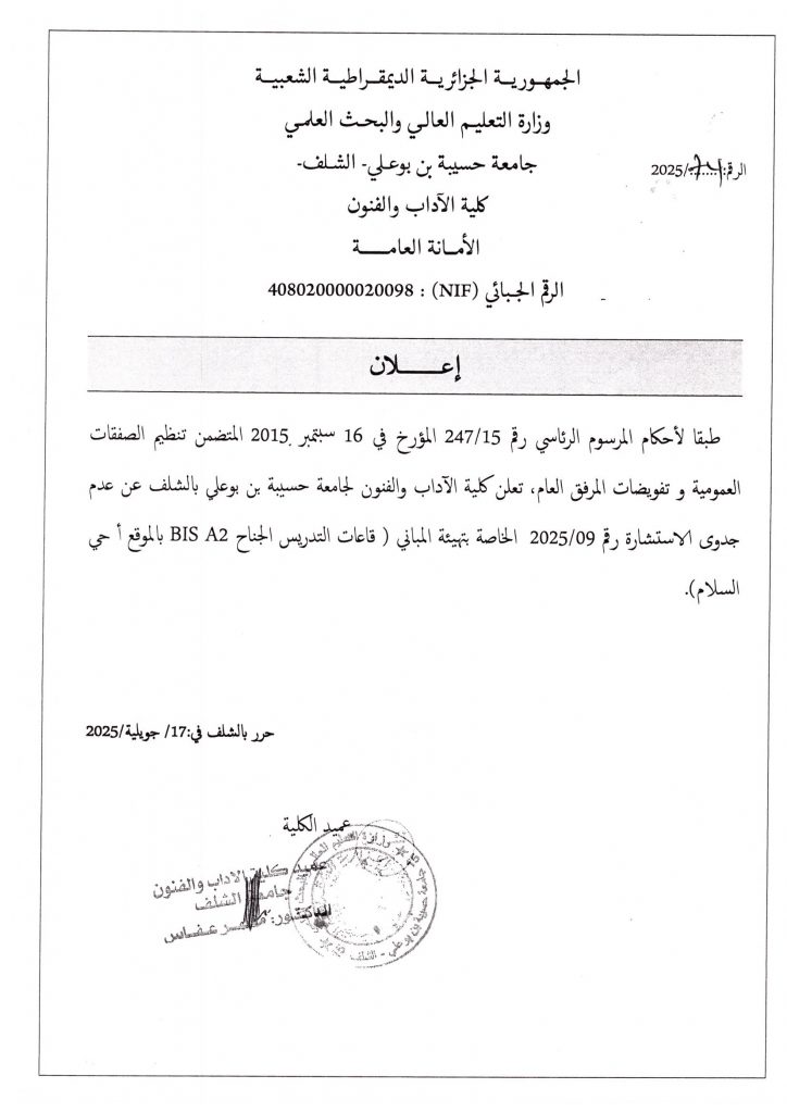 كلية الآداب و الفنون -جامعة حسيبة بن بوعلي الشلف-
