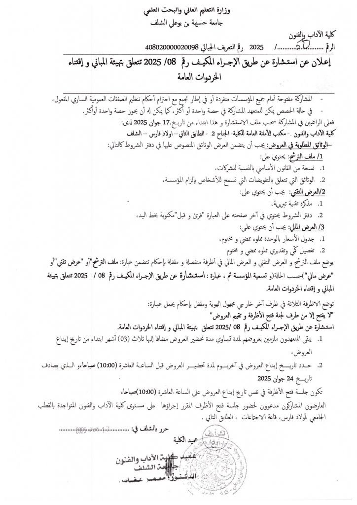 إعلان عن استشارة عن طريق الاجراء المكيف رقم 2025/08