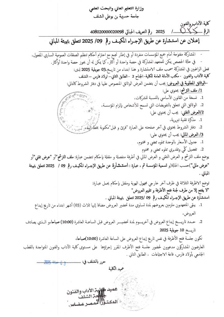 إعلان عن استشارة عن طريق الاجراء المكيف رقم 2025/09