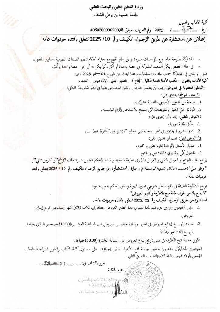 إعلان عن استشارة عن طريق الاجراء المكيف رقم 2025/10