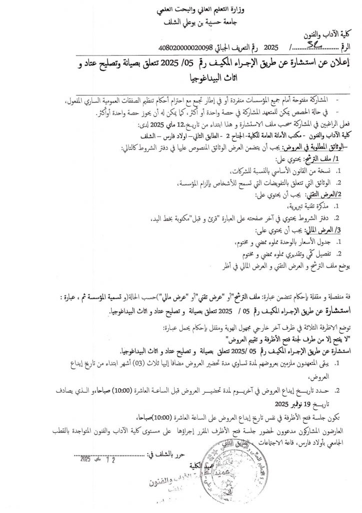 كلية الآداب و الفنون -جامعة حسيبة بن بوعلي الشلف-
