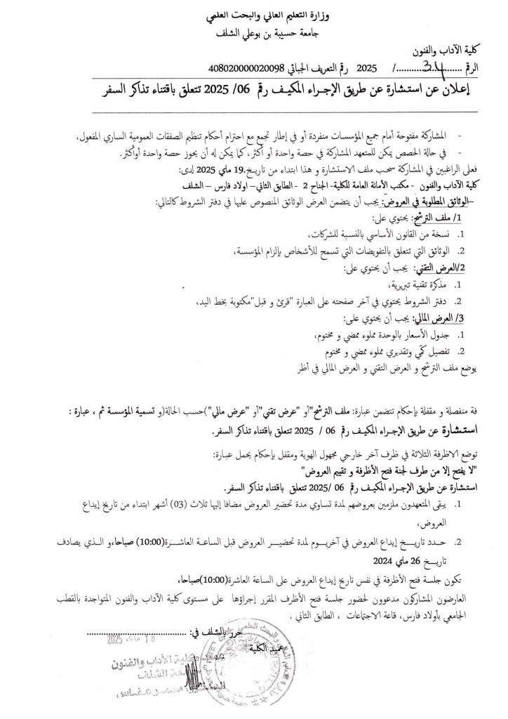 إعلان عن استشارة عن طريق الاجراء المكيف رقم 2025/06