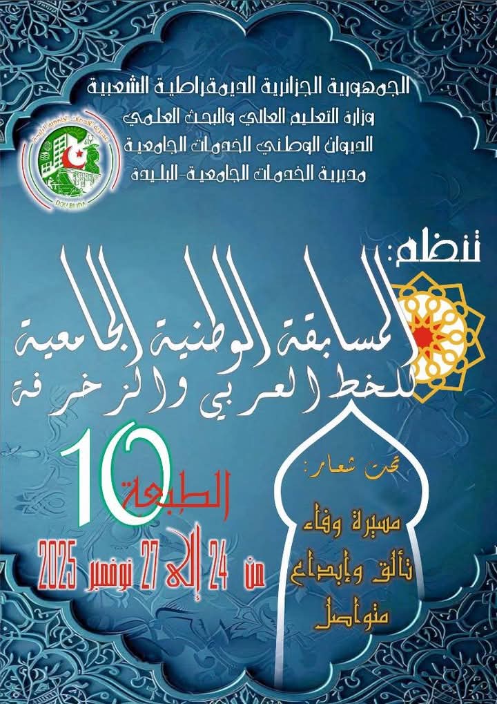 تعلم المديرية الفرعية للانشطة العلمية الثقافية و الرياضية جميع طلبة جامعة حسيبة بن بوعلي الشلف الراغبين في المشاركة و تمثيل