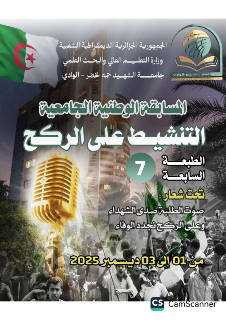 تجسيدًا للبرنامج السنوي (2024-2025)، المتعلق بالأنشطة العلمية والثقافية والرياضية الذي سطرته مديرية الحياة الطلابية بالتنسيق مع الديوان الوطني للخدمات الجامعية،
