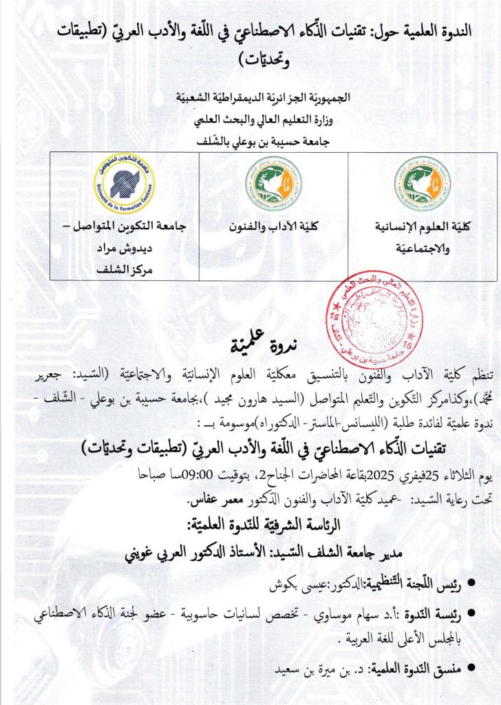 ندوة علمية لفائدة الطلبة “تقنيات الذكاء الاصطناعي في اللغة والأدب العربي” (تطبيقات وتحديات)