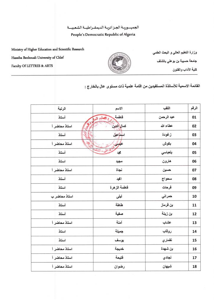 كلية الآداب و الفنون -جامعة حسيبة بن بوعلي الشلف-