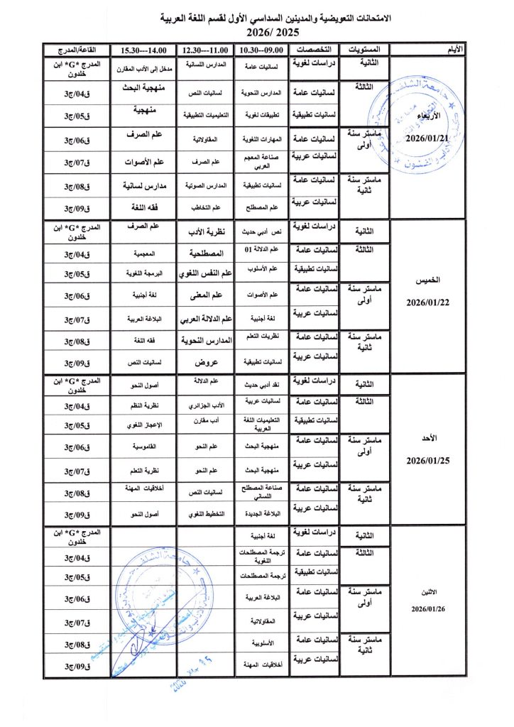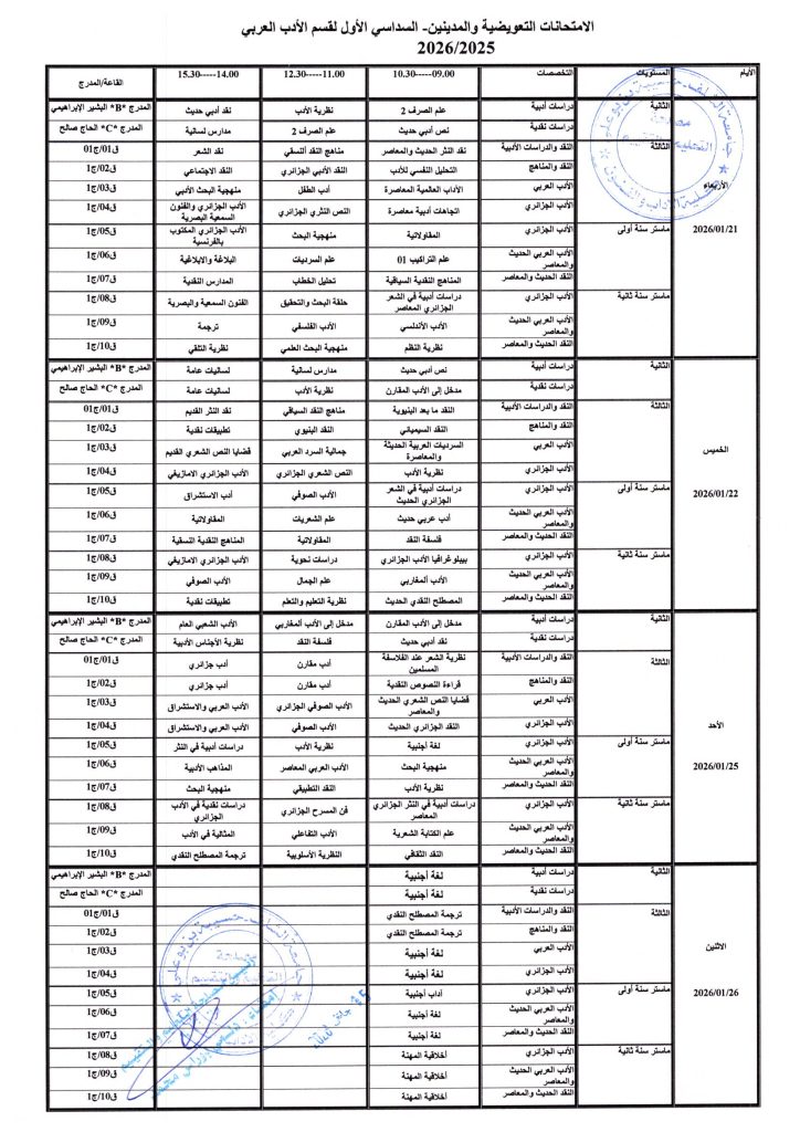 الامتحانات التعويضية والمدينين لكل المستويات السداسي الأول 2025-2026بواسطة izzeddine ameur / 15 يناير، 2026