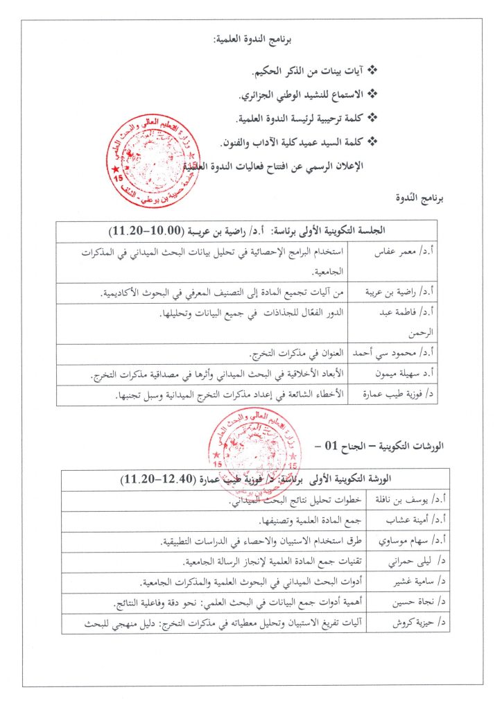 ندوة تكوينية موسوبة بـ:البحث الميداني في مذكرات التخرج: منهجيات جمع المعطيات وتحليلها