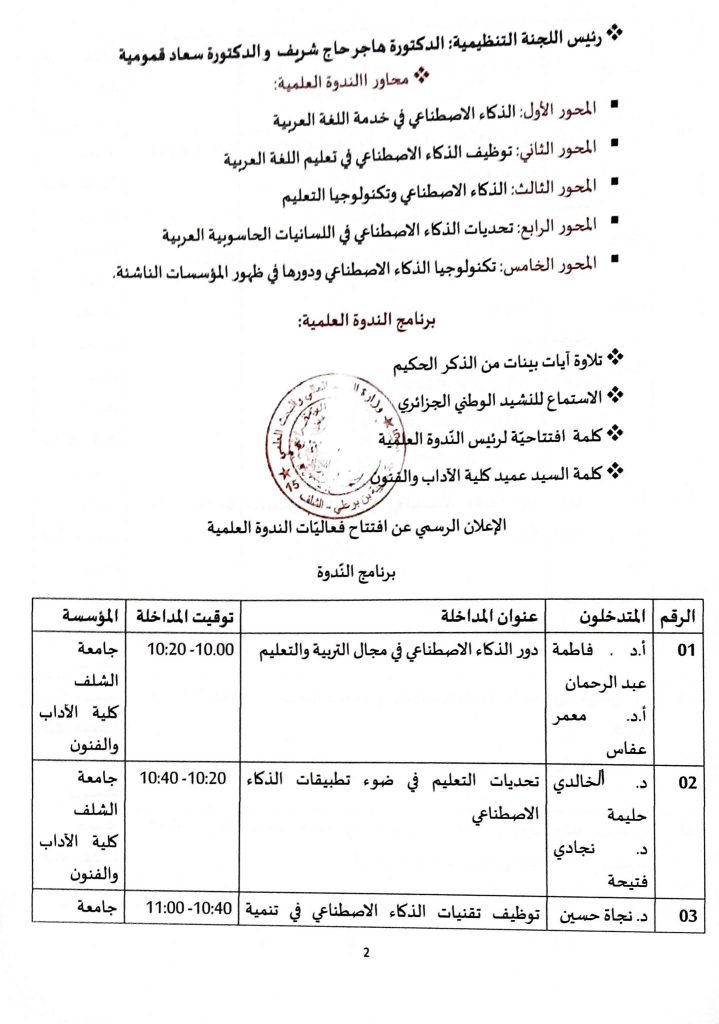 ندوة علمية حول فنيات الذكاء الاصطناعي في ترقية البحث العلمي 16 مارس، 2026 ندوة علمية حول فنيات الذكاء الاصطناعي في ترقية البحث العلمي يوم الاحد 19 أفريل 2025