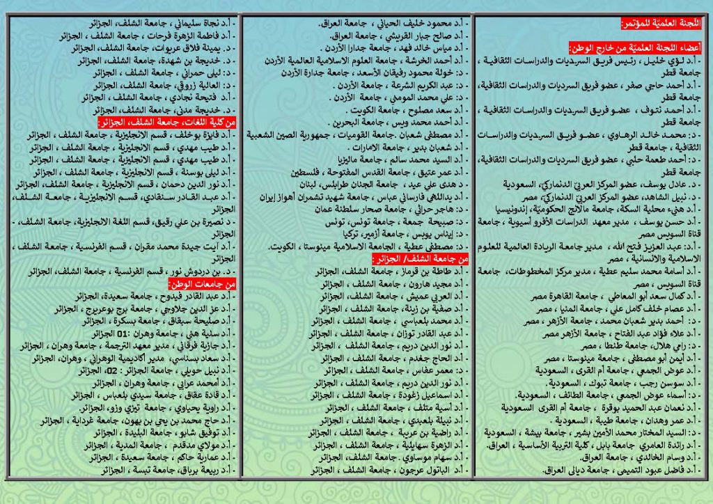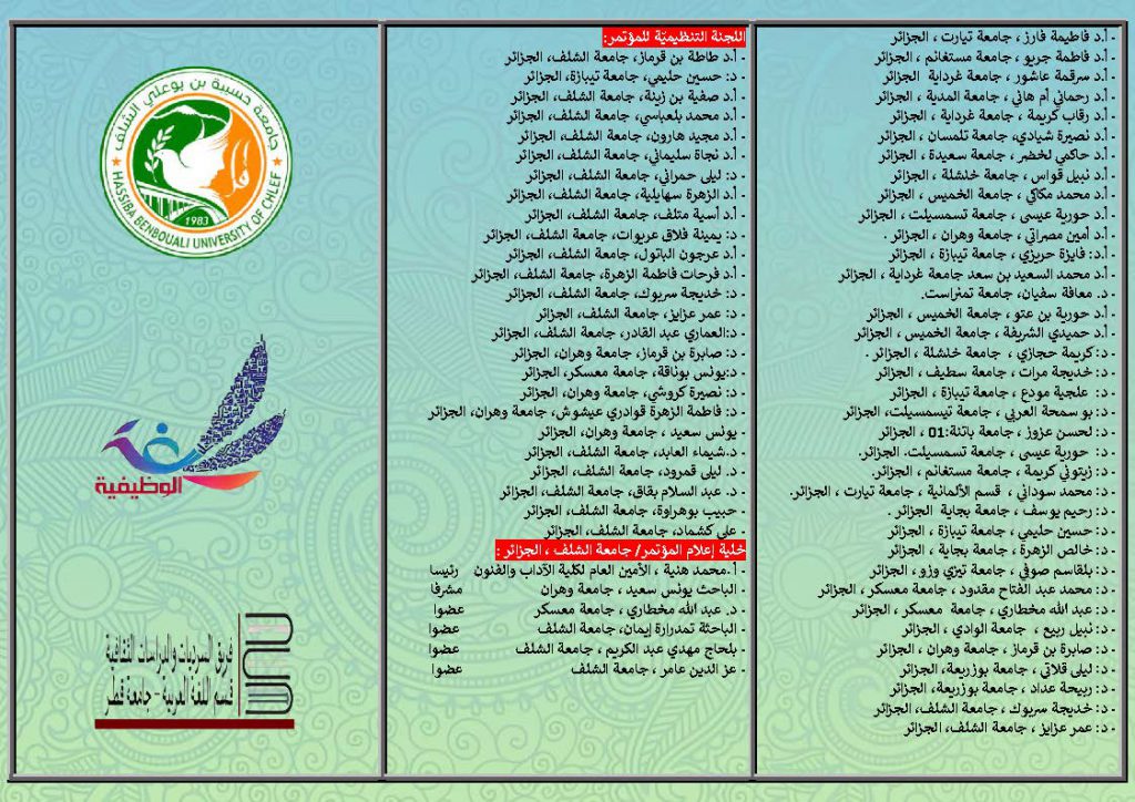 تنظّم كلية الآداب والفنون “مخبر نظريّة اللّغة الوظيفيّة” بجامعة الشلف، الجزائر، بالشراكة العلميّة مع فريق السرديّات والدراسات الثقافيّة، بقسم اللغة العربيّة، بجامعة قطر، مؤتمرا دوليّا حضوريّا وعن بعد، بعنوان: “الأنساق المضمرة في سرد الثقافة المهمّشة في التراث الحكائيّ” يومي 14/ 15 أكتوبر 2024… بالتوفيق.